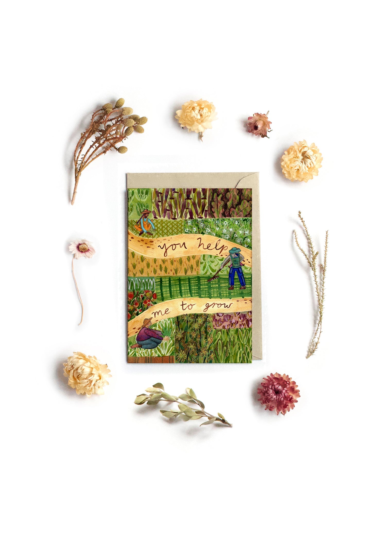 Printed locally on recycled paper. Blank inside. Envelope included.